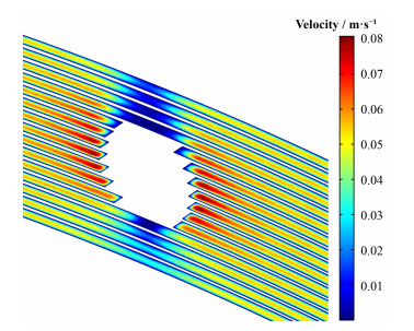 图 10 堵塞区域外围熔盐层的速度 Figure 10 The absolute velocity of the outer layer salt nearby the blocked region |