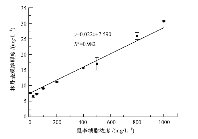 | 图 1 鼠李糖脂对林丹的增溶曲线 Fig. 1 Solubilization of lindane by rhamnolipids |