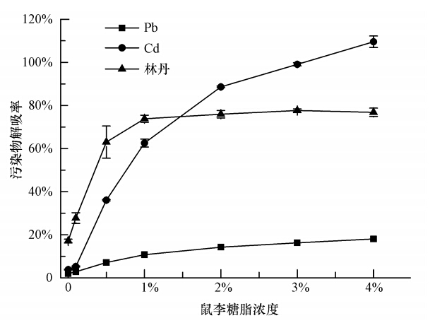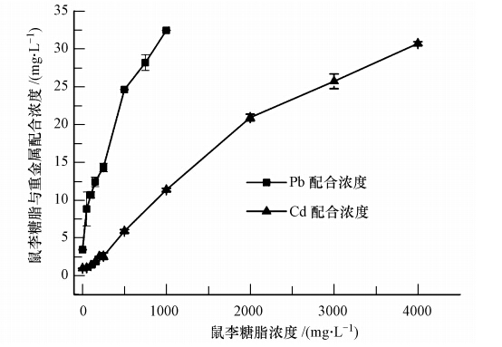 | 图 3 不同浓度鼠李糖脂对Pb、Cd的配合 Fig. 3 The complexation of Pb and Cd with rhamnolipids |