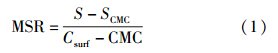 摩尔增溶比(MSR)通常用来定量描述表面活性剂对溶质的增溶能力,MSR可通过下式计算: