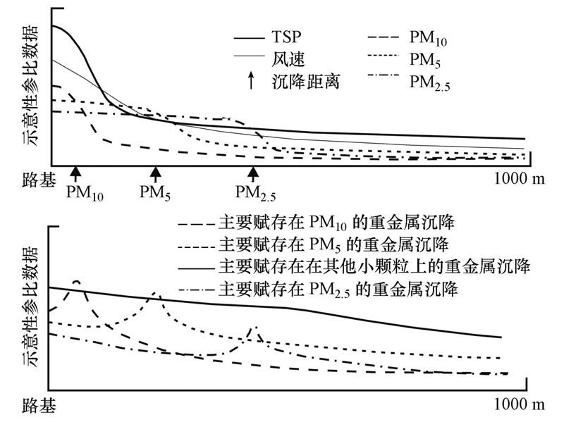 | 图 1 交通源重金属空中迁移示意图 Fig. 1 Schematic diagram of transport of traffic-source heavy metals in the air |