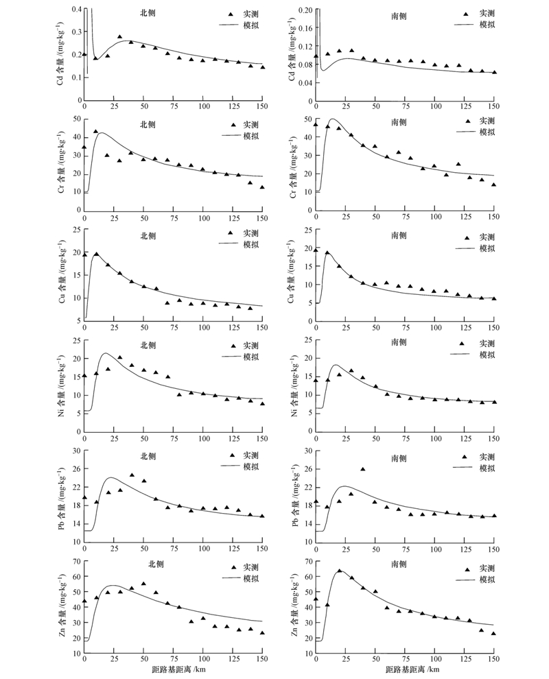 2)用G310国道杏花营断面土壤实测重金属含量对模型预测进行验证,结果表明,在n =1的情况下,该模型能够比较准确地拟合路旁土壤重金属含量的空间分布形式.