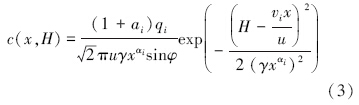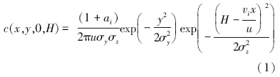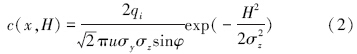 将式(1)和式(2)结合后,即可得到路域大气颗粒物离路基距离x m处的地面浓度,即: