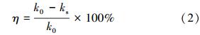 回灌试验结束后,利用公式(1)计算砂柱的渗透系数.其中,Q为出水流量,D=5 cm,Δx为砂柱上、下测压管的水头损失,Δh为两测压管距离(18 cm).以砂柱渗透系数的降低率描述砂柱的堵塞程度,公式如下: