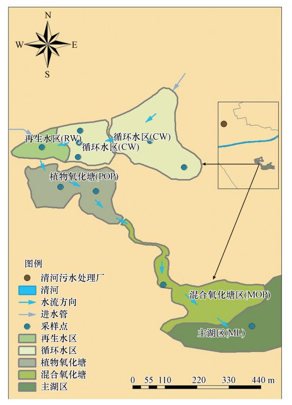 城市人工湿地作为集观赏、娱乐、污水净化于一体的景观生态环境系统,不仅具有重要的景观作用,而且能有效去除水体氮、磷、各种有机物质、重金属及病原菌,降低水体BOD、TSS含量( Thurston et al.,2001; Zhao et al.,2009),因而在城市景观水体的水质改善中逐渐得到广泛应用(Cui et al.,2011; He et al.,2007).然而,目前关于再生水河湖景观补水,尤其是人工湿地回用的研究多集中于分析人工湿地对再生水中污染物质的去除效率,评估湿地净化状况等方面,而关于再生水湿地净化系统的运行机制鲜见报道.