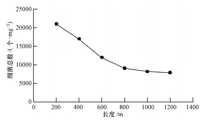 | 图 4 细菌总数的沿程变化 Fig. 4 Variation of total number of bacteria along the length of simulated networks |