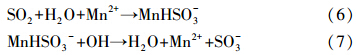 Mn2+在水溶液中作为催化剂,将SO2催化成亚硫酸根和硫酸根(Huss et al., 1982; Berglund et al., 1993; Berglund and Elding, 1995),主要反应如下: