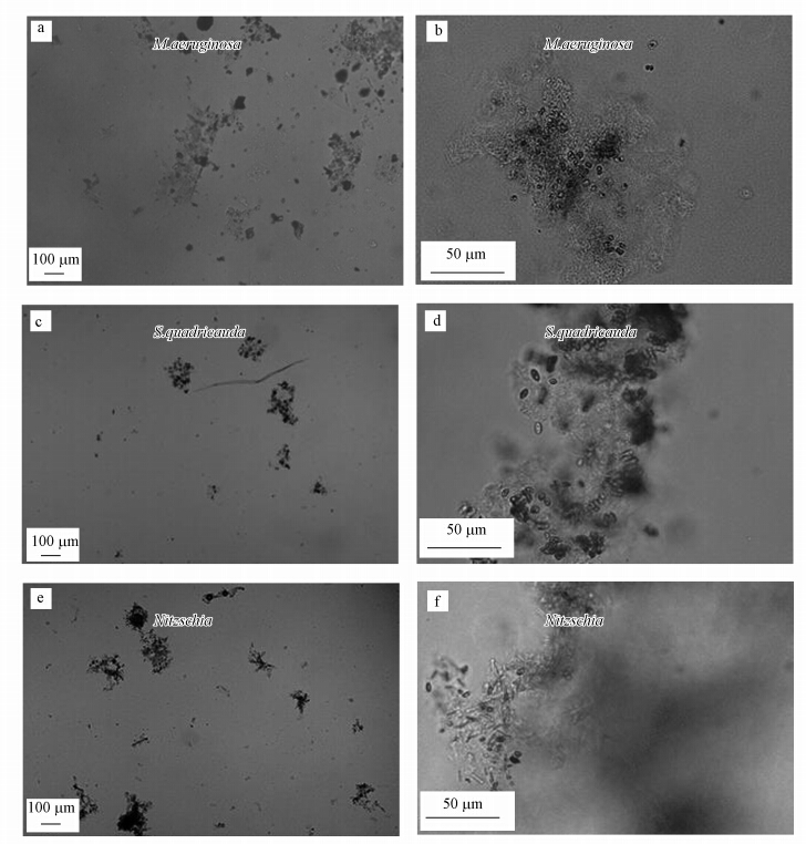 | 图 2 颗粒物及藻细胞的显微形貌 Fig. 2 The microscopic morphology of algal cells and particulate matter |