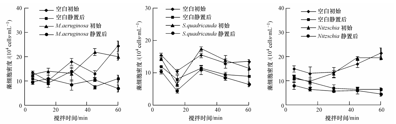 | 图 4 不同静置时间下藻细胞密度变化 Fig. 4 Changes in algal cell density under different static duration |