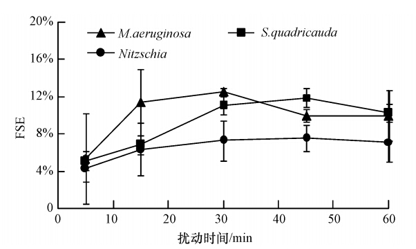 3)5~60 min范围内扰动时间均促进3种藻的絮凝沉降且存在一定的差异性.短时(5 min)和长时(60 min)扰动对3种藻类的絮凝沉降作用较小,中等时间(15~45 min)的扰动有利于藻类的絮凝沉降.