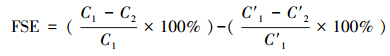 混凝搅拌结束后,迅速从烧杯取样口取100 mL混合液于100 mL的量筒中静置,静置结束后分别于液面下2 cm处取一定体积的上清液样品,用血球计数板(Minato TATAI)在光学显微镜下进行藻细胞计数,每次计数细胞30~300个,每个样品计数3次.用絮凝沉降效率(Flocculation-settlement efficiency,定义为FSE)反映颗粒物对藻类絮凝沉降效果,计算公式如下: