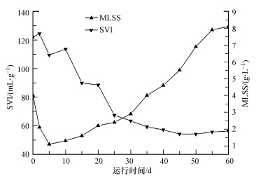 | 图 1 好氧颗粒污泥形成过程中污泥生物量和沉降性能变化规律 Fig.1 Variations of MLSS and SVI during the formation process of AGS |