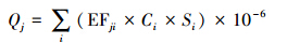 式中,Qj为污染物j的排放总量(t),EFji为第i类型机动车的污染物j的排放因子(g · km-1 · 辆-1),Ci为第i类型机动车的数量(辆),Si为第i类型机动车的年行驶里程(km).