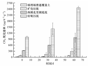 | 图 4 接种不同分离源甲烷氧化菌后覆盖材料的甲烷氧化速率 Fig.4 CH4 oxidation rates of l and fill covers inoculated by different mixed culture of methanotrophs |