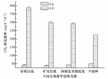 | 图 2 不同分离源甲烷氧化菌的甲烷氧化率 Fig.2 CH4 oxidation rates of mixed culture of methanotrophs at different samples |