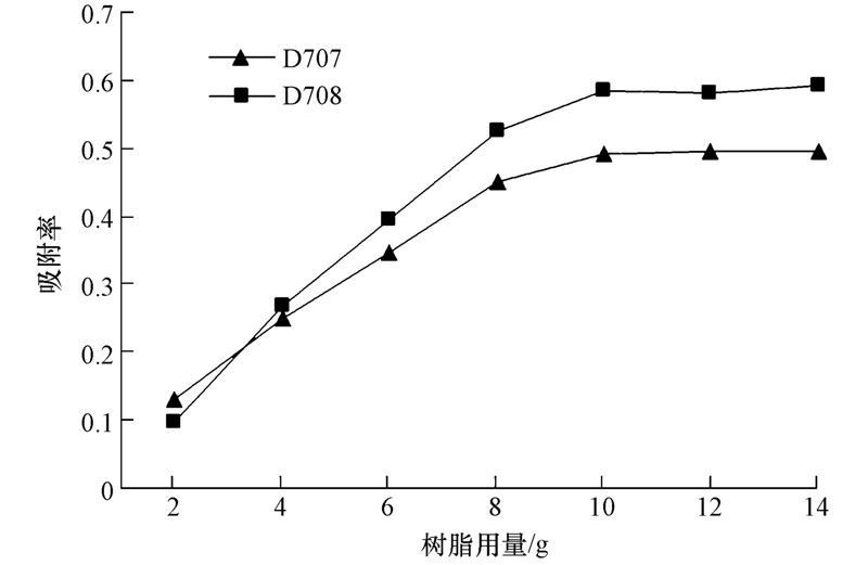 | 图 2 树脂用量对吸附率的影响 Fig.2 Influence of resin quality on the adsorption rate |