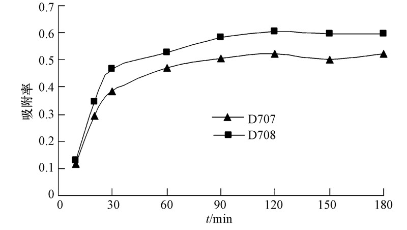 | 图 3 吸附时间对吸附率的影响 Fig.3 Influence of time on the adsorption rate |
