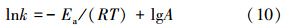 | 图 5 表观吸附活化能的测定 Fig.5 Determination of adsorption apparent activation energy of ammonium ions |