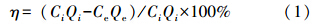 式中,Ci和Ce分别为出入水质中抗生素浓度(μg · L-1),Qi和Qe分别为出入水量(L)