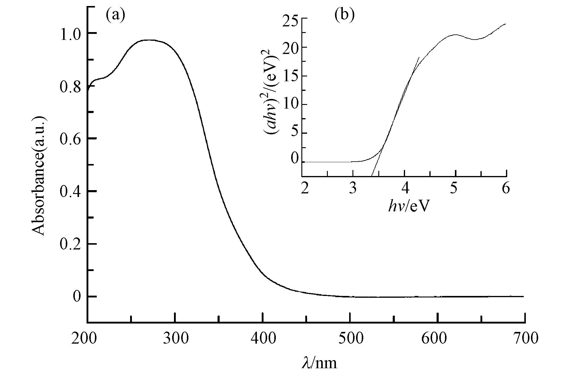 | 图3 In2TiO5纳米带的UV-vis DRS图谱及(αhν)2-hν曲线 Fig.3 UV-vis DRS and the plots of (αhν)2 vs hν of In2TiO5 nanobelts |