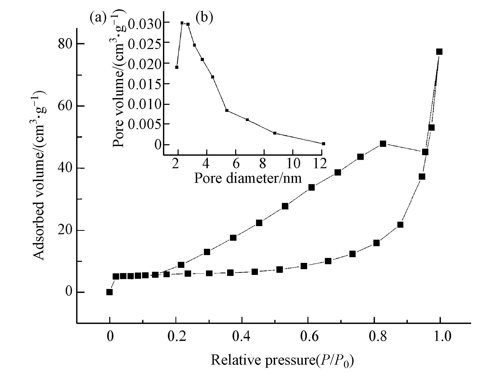 | 图4 样品的N2吸(脱)附等温曲线(a)和孔径分布图(b) Fig.4 N2 adsorption-desorption isotherm curve(a) and the pore size distribution curve(b) |