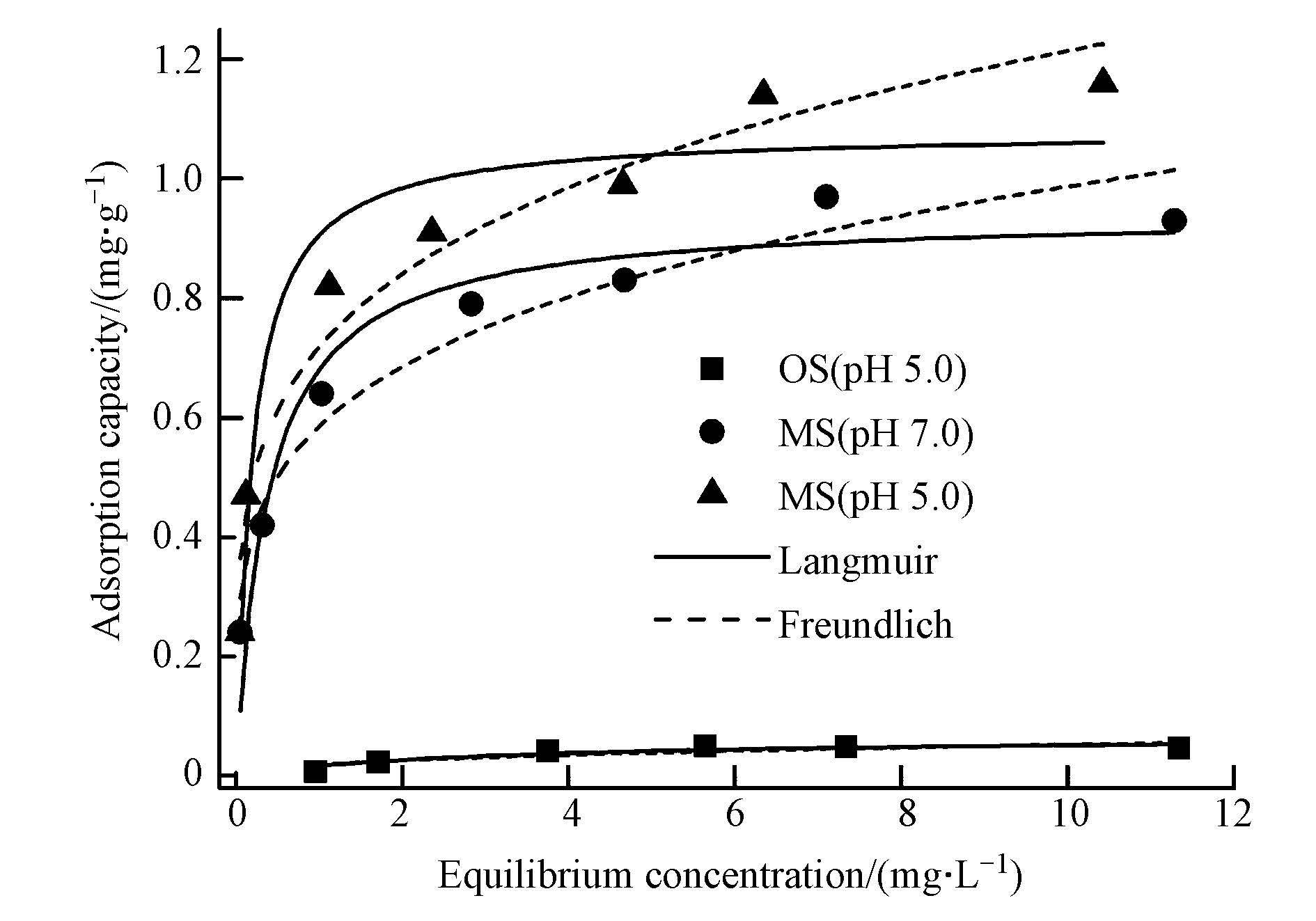 | 表2 海砂与包覆海砂的Langmuir和Freundlich吸附等温线拟合结果 Table 2 Langmuir and Freundlich isotherm parameters for phosphate adsorption on original s and (OS) and coated s and (MS) |