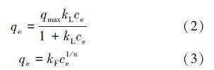 对磷吸附结果分别用Langmuir模型式(2)与Freundlich模型式(3)进行拟合.