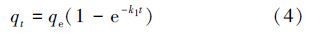 准一级动力学模型基于假定吸附受扩散步骤控制,吸附速率正比于平衡吸附量与t时刻吸附量的差值,其速率方程为: