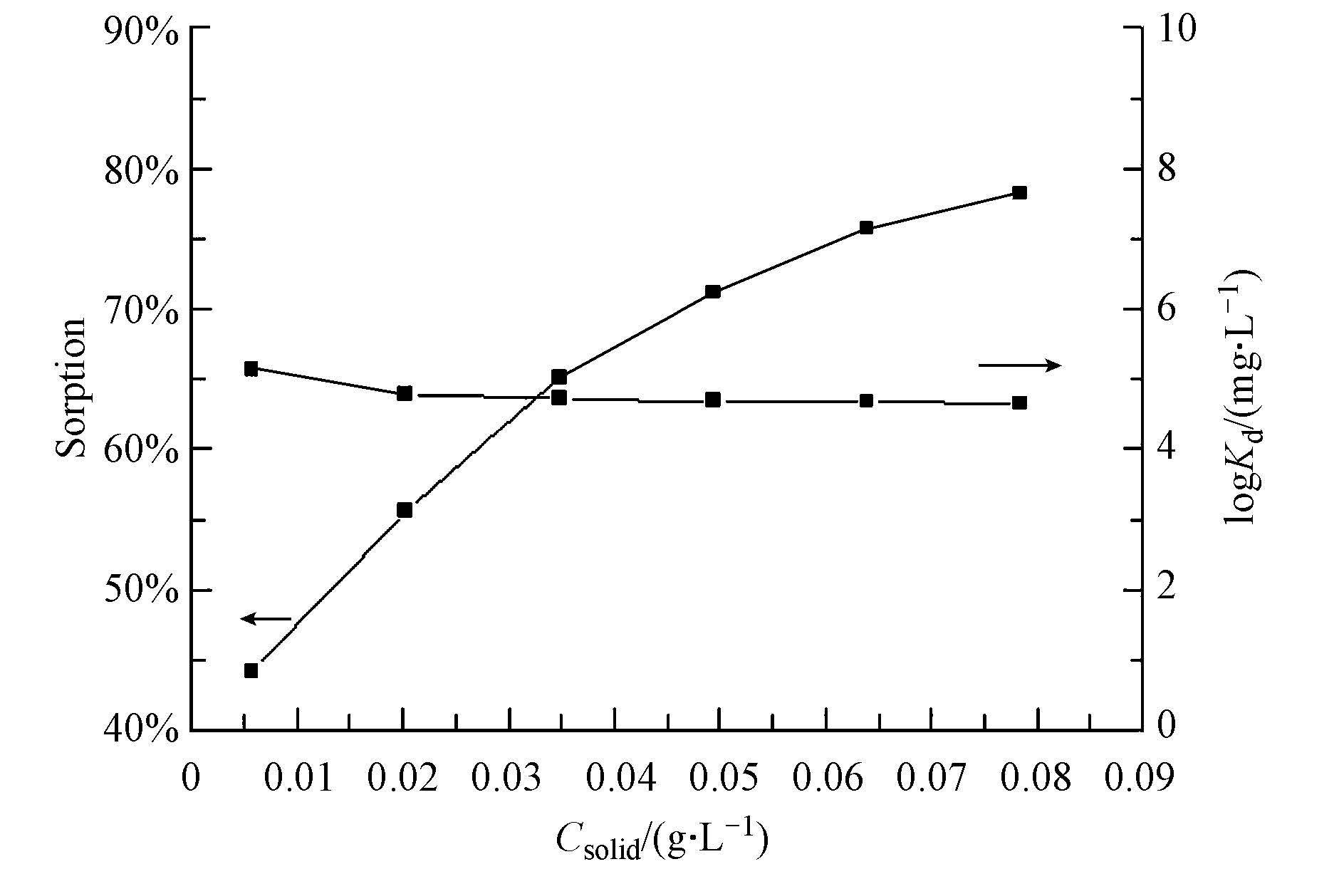 | 图5 MHNTs的初始浓度对十八烷胺吸附的影响(实验条件:T=293.15 K,pH=3.5±0.1,C(octadecylamine)initial=1 mg · L-1,I=0.01 mol · L-1 NaCl) Fig.5 Adsorption of octadecylamine on magnetic halloysite a function of solid content |