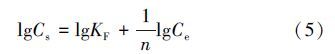 图 9(b)是根据Freundlich等温方程拟合的曲线,表达式如下: