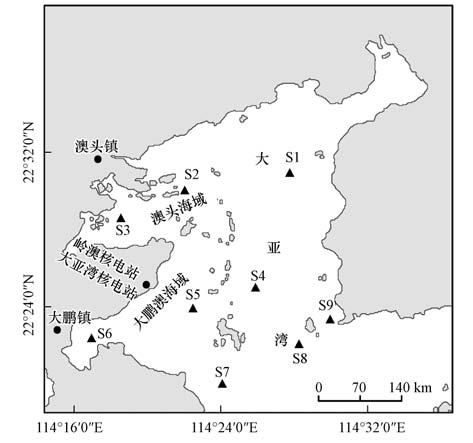 | 图1 大亚湾采样点的设置 Fig.1 Sampling sites in the Daya Bay |