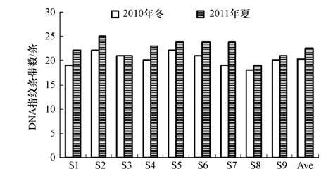 3)夏季DNA指纹条带数明显高于冬季,但冬季的多样性指数与均匀度指数较高.