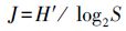 式中,n为每个泳道的条带数目,Pi=Ni/N,Ni为第i条条带的峰面积,N为该泳道所有条带的峰面积总和. 2.5.2 Pielou均匀度指数(J)