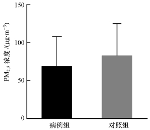 图 1 病例-对照组间PM2.5差异性分析 Fig. 1 Difference of PM2.5 concentration between asthma cases and controls |