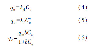 吸附等温线分别用线性吸附模型(Linear)((式(4))、Freundlich吸附模型(式(5))、Langmuir吸附模型(式(6))进行拟合(Guo et al.,2015).