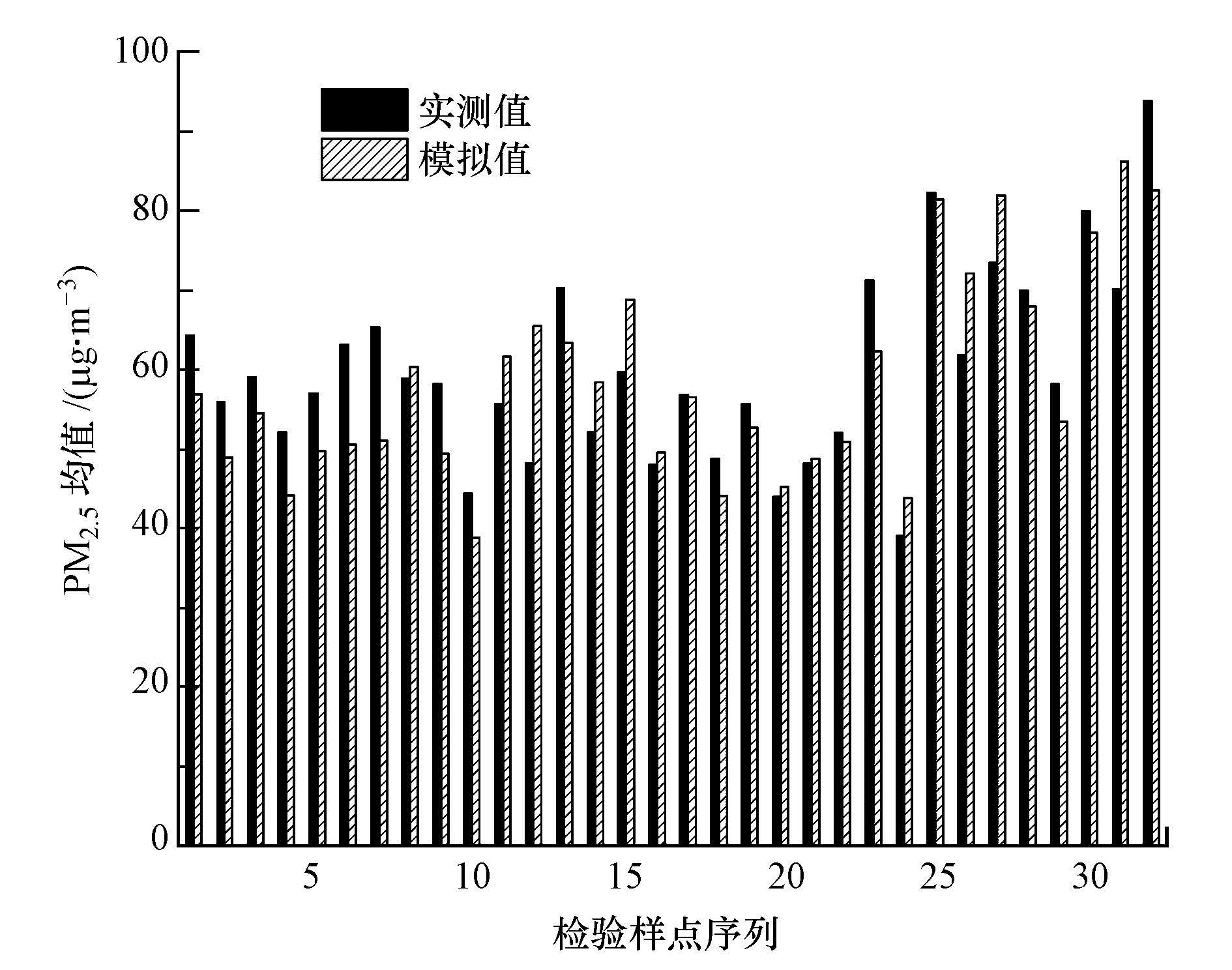 3) 对比模拟值和真实值,结果表明验证数据集的准确率高,平均相对误差率不到3%,说明预测模型可以简单有效地估计PM2.5质量浓度.