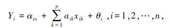 式中,αio为在回归点i的截距,αik为在回归点i的第k个参数,θi为随机误差,Yi为因变量.