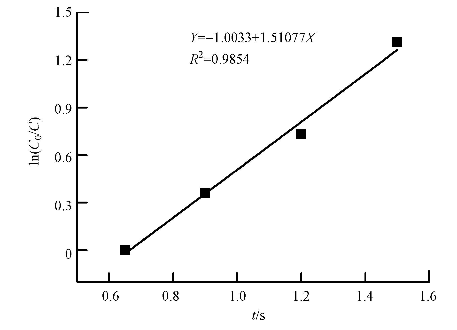 | 图 3 氩气放电气氛下对氯苯甲酸与·OH反应的动力学拟合结果 Fig. 3 Kinetics fitting of parachlorobenzoic-acid and ·OH reaction at discharge atmosphere of argon |