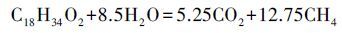 2.5 油酸钠的甲烷转化率(CR)的计算油酸钠的理论甲烷产量(式3) ,可以通过Buswall公式(式 1) 得出(Li et al.,2013; Meng et al.,2015) .油酸钠的甲烷转化率(CR)公式(式4) ,可由实际油酸钠产甲烷量(EMY)和理论产甲烷量(TMY)(式3) 相比得出.