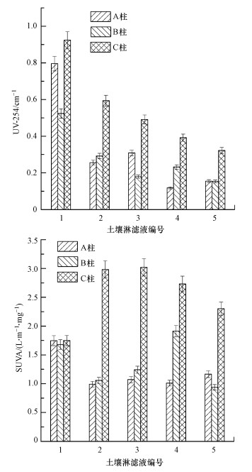 | 图 3 土壤浸提液中DOM的UV-254及SUVA Fig. 3 UV-254 and SUVA of DOM in soil extracts |