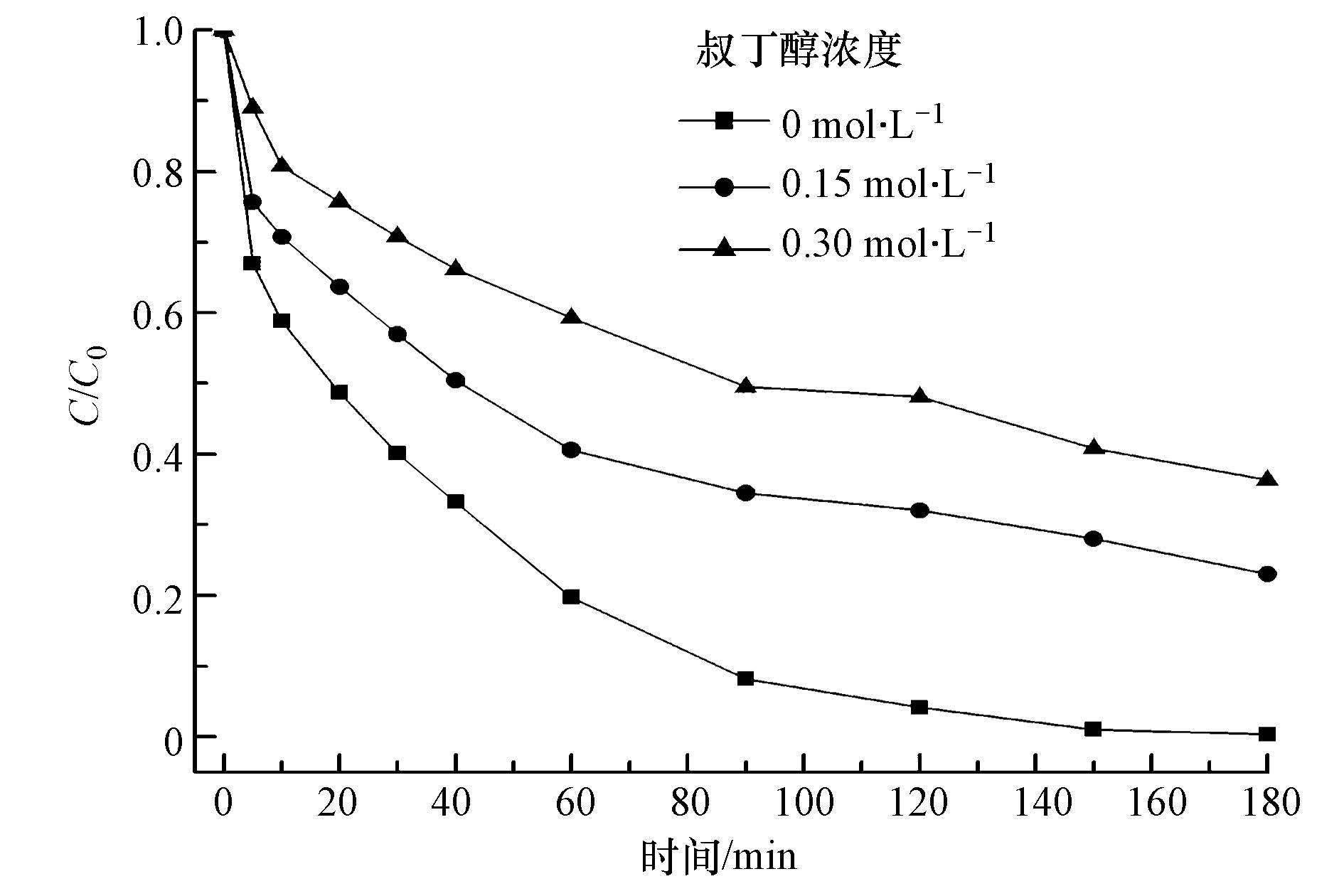 | 图 11 叔丁醇对CIP去除效果的影响 Fig. 11 Effects on the removal of CIP at different tertiary butanol concentrations |
