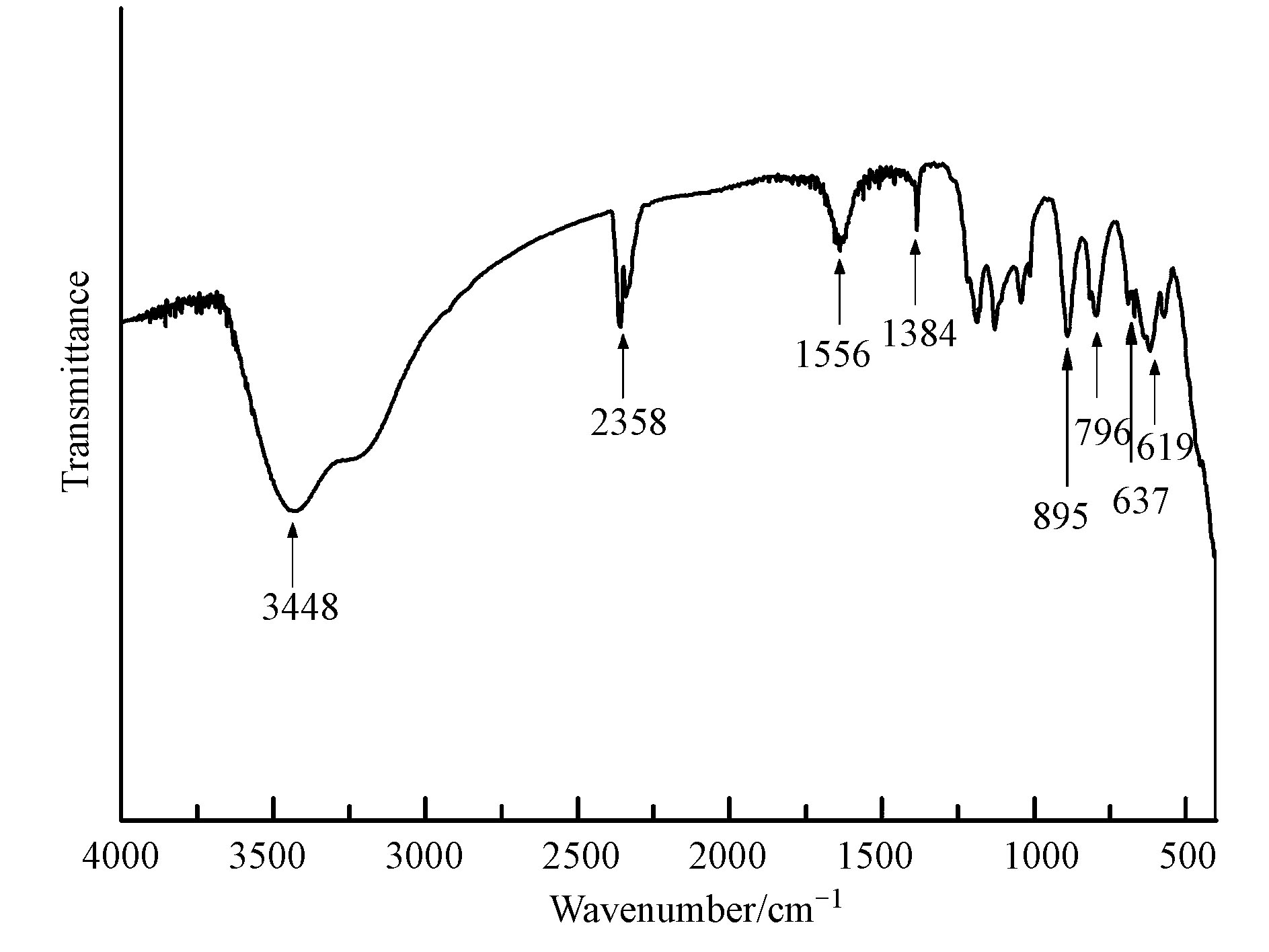 | 图 3 α-(Fe,Cu)OOH的红外光谱图 Fig. 3 FT-IR spectrum of α-(Fe,Cu)OOH |