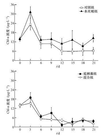 | 图 2 水体中Chl-a的浓度变化(平均值±标准差) Fig. 2 The changes of Chl-a concentration in water column.(Mean±SD) |