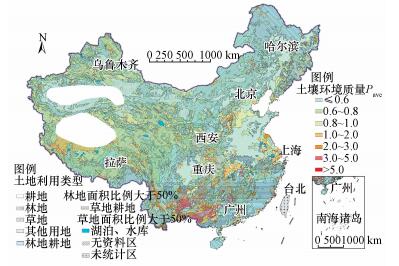 (1) 东北、西北地区Pave小于0.6, 土壤环境质量优良, 主要土地利用方式包括草地、林地和部分耕地;