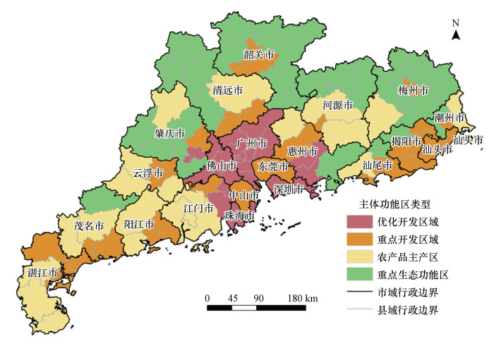 改革开放以来, 我国进入快速工业化、城镇化阶段, 高速度、高密度、高强度的空间扩张过程不可避免地引发了高耗能、高排放、高污染问题(周侃等, 2020).作为我国改革开放的前沿阵地, 广东省经济长期保持高速增长水平, 但与此同时, 污染物持续快速排放引发的环境污染问题也日益突出.为此, 广东省政府先后出台了多项环境防治政策.但由于未能充分考虑实施范围内的区域差异, 该类政策的防治效果往往有限, 甚至可能引起污染转移现象(沈静等, 2015).相比之下, 以空间管治为基本理念的主体功能区规划充分考虑了环境污染及其路径在空间上的差异性, 强调污染防控的空间性和全局性(樊杰, 2013), 并通过差别化的环境政策, 为精确化控制环境污染提供了途径.因此, 本文基于主体功能区的视角, 在县域尺度上揭示区域环境污染减排的时空变化及其驱动因素差异, 以期为精准化制定环境管制政策提供参考.
