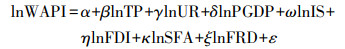 式中, WAPI为水气污染综合指数, 反映县域水环境和大气环境的综合污染状况;TP为年末常住人口数量(万人), 反映县域人口规模;UR为城市化率, 反映县域城市化水平;PGDP为人均GDP(万元/人), 反映县域经济发展水平, 并对2016年数据以2012年为基期进行平减以消除价格因素影响;IS为第二产业增加值占GDP的比重, 反映县域工业化水平及产业结构;FDI为外商直接投资额(亿美元), 反映县域接受外商直接投资的规模;SFA为社会固定资产投资, 反映县域社会固定资产投资状况;FRD为财政收入分权程度, 借鉴既有研究(Akai et al., 2002; 孙群力, 2009)采用人均分权指标衡量相对于全省平均水平的县域财政收入分权程度, 计算方法为: 某县域财政收入分权程度=该县域人均财政收入/全省人均财政收入;α为常数项, β, γ, δ, ω, η, κ, ξ为各解释变量的弹性系数, ε为误差项.