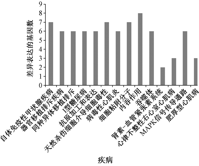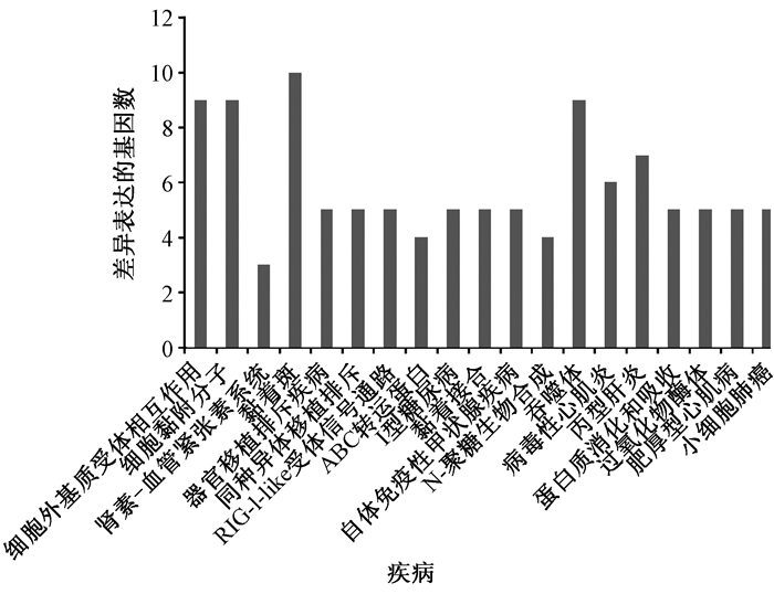 | 图 3 下调基因参与的信号通路及疾病 |