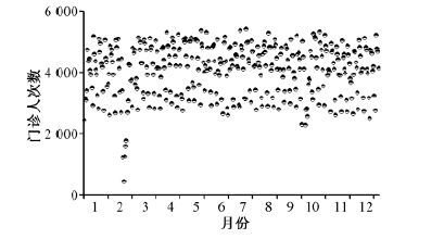 | 图 1 2015年无锡市某三甲综合医院逐日总门诊量散点图 |