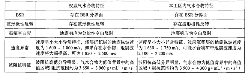 通过以上研究可以发现,该异常体在地震剖面上表现为空白反射,其下存在一个较明显的BSR界面,与上下围岩相比其速度和阻抗特征呈现上下小、中间大的特征。将本区异常体特征与权威气水合物进行了一个对比(表 1),综合分析认为该异常体极有可能是水合物成矿带。