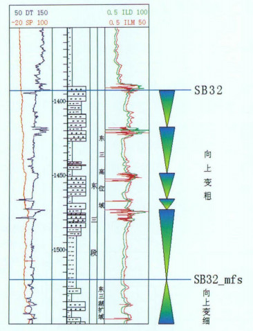 SB31和SB32特征类似,岩性略有差异,测井响应亦表现为界面之下的反旋回和界面之上的正旋回。